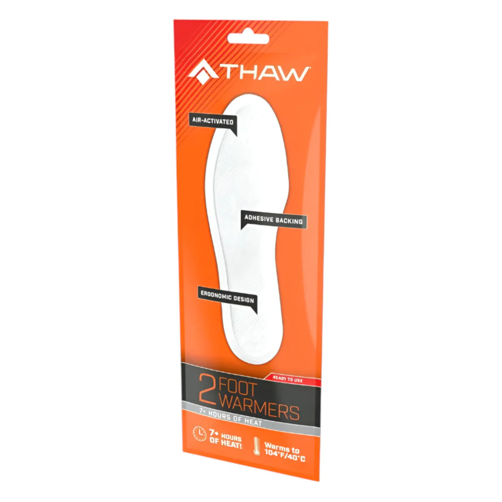 Keep warm and cosy with disposable heated insoles from THAW. One pack stays warm for 7+ hours of safe, natural heat. Simply open package, peel back adhesive, and stick to the bottom of your sock. When opened, air reacts to the ingredients inside the pouch to create a safe and long lasting heat so you can get on with your outdoor activities. Use it all day then dispose of it easily.